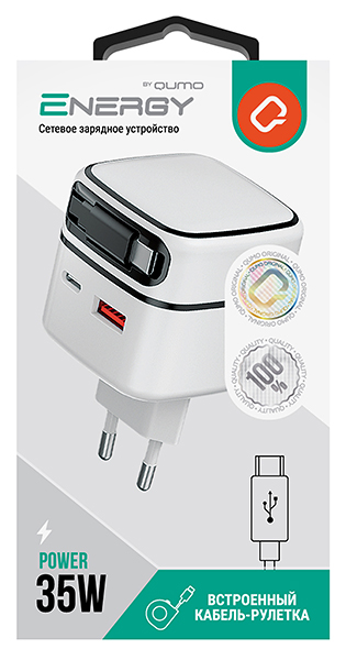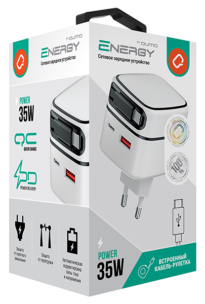 Сетевое зарядное устройство QUMO со встроенным кабелем-рулеткой выполнено в прочном и стильном корпусе и предназначено для надежной зарядки мобильных устройств (планшетов и смартфонов). В данном устройстве использованы самые современные чипсеты, которые контролируют все параметры зарядки, заряжаемое устройство защищено от скачков силы тока или напряжения, что выделяет данное зарядное на фоне аналогичных моделей конкурентов.