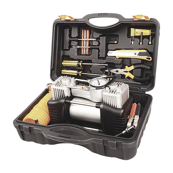 1. Автомобильный компрессор QUMO AC70 2. Кейс для хранения 3. Набор насадок — 3 шт 4. Клей для заклеивания шин — 30 мл 5. Набор жгутов — 3 шт 6. Отвертка крестовая — 1 шт 7. Отвертка плоская — 1 шт 8. Канцелярский нож — 1 шт 9. Пассатижи — 1 шт 10. Инструмент для подготовки прокола — 1 шт 11. Инструмент для установки жгута — 1 шт 12. Инструкция по эксплуатации