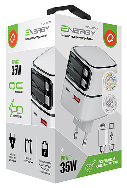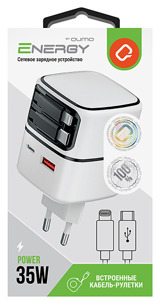 Сетевое зарядное устройство QUMO со встроенным кабелем-рулеткой выполнено в прочном и стильном корпусе и предназначено для надежной зарядки мобильных устройств (планшетов и смартфонов). В данном устройстве использованы самые современные чипсеты, которые контролируют все параметры зарядки, заряжаемое устройство защищено от скачков силы тока или напряжения, что выделяет данное зарядное на фоне аналогичных моделей конкурентов.