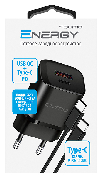СЗУ Qumo Energy PD 20Вт (модель 0109), Type-C PD + USB-A QC3.0