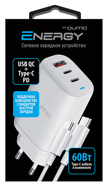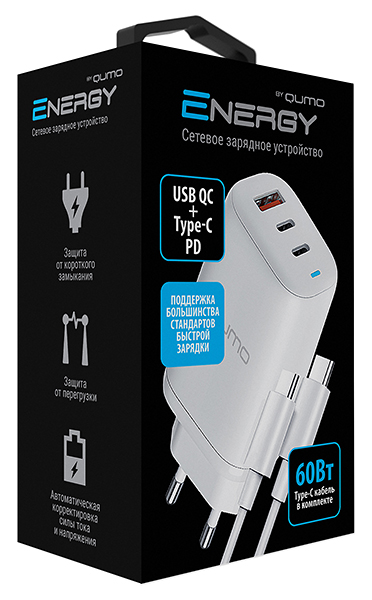 Сетевое зарядное устройство QUMO выполнено в прочном и стильном корпусе и предназначено для надежной зарядки мобильных устройств (планшетов и смартфонов). В данном устройстве использованы самые современные чипсеты, которые контролируют все параметры зарядки, заряжаемое устройство защищено от скачков силы тока или напряжения, что выделяет данное зарядное на фоне аналогичных моделей конкурентов.