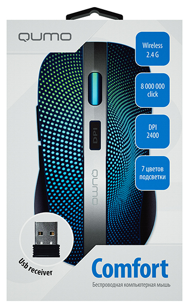 Офисная беспроводная мышь Comfort отличается наличием многоцветной подсветки. Корпус выполнен симметричным и удобен и для правой и для левой руки. Поверхность пластика soft-touch приятно ощущается в руке и на ней не остаются следы пальцев. Подсветка динамически изменяется, переливаясь всеми цветами. Документация и ПО