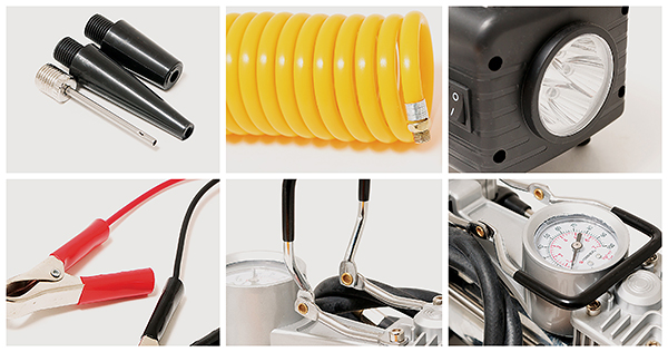 Варианты подключения: Через прикуриватель 12В или зажимы на АКБ (переходник с зажимами в комплекте); Макс. давление: до 10 атм/150 PSI; Производительность: 70 л/мин; Непрерывная работа компрессора: Не более 15 минут